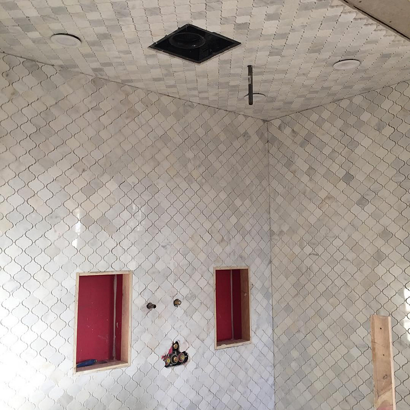 Marble tile in the master shower turned out really nice. Marble slabs going in next!