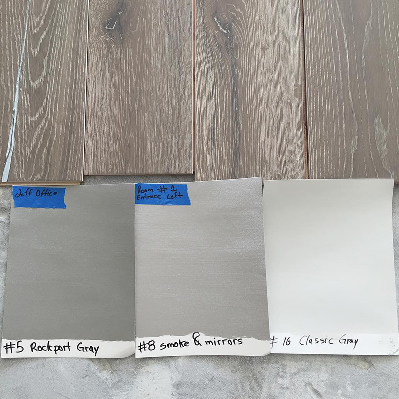 Waited 2 weeks for this amazing whitewashed with gray under tones and distressed flooring. They delivered 4500sf of it to the property. Unfortunately, what was delivered looked liked the board on the left. It’s pink! The sample boards on the right is what it is supposed look like.