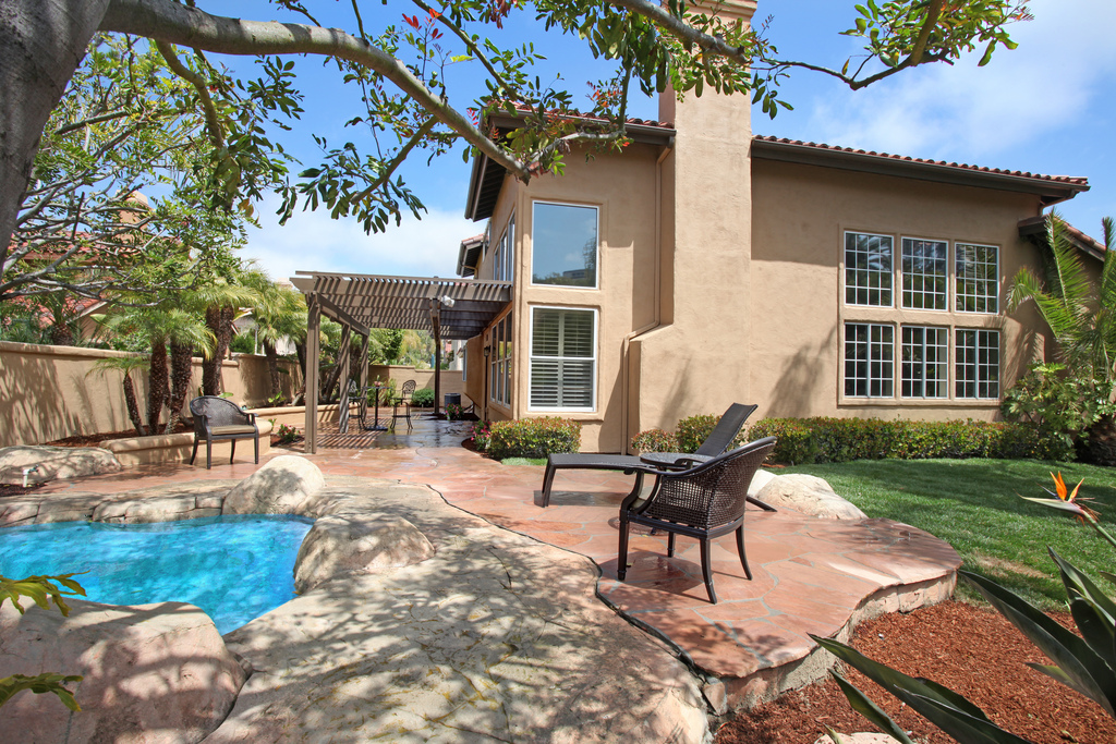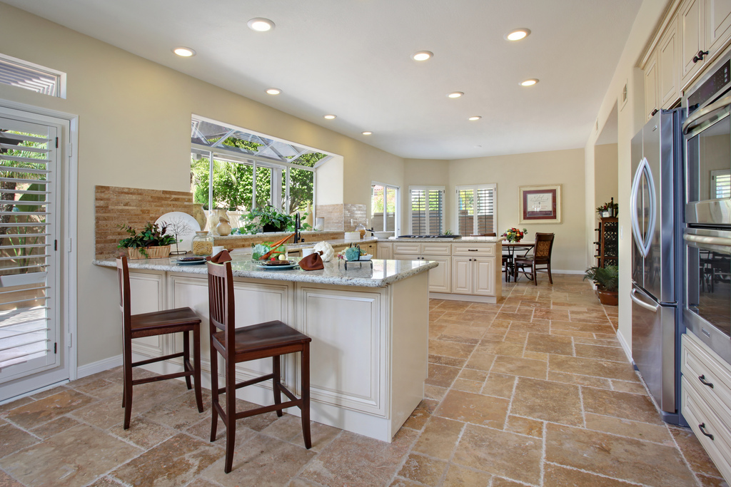 Big and beautiful 3046 Sq Ft Mediterranean home with 5 bedrooms, 3 car garage and an office! Largest model in tract on a premium corner lot in the gated communtiy of Westgate Cove. A small community that’s very quiet and a private location. Floor plan was enhanced and modernized to today’s building standards to maximize space and functionality. Completely remodeled including new chefs kitchen with antiqued cabinets, slate granite counters, stainless appliances, distressed travertine flooring and recessed lighting. All bathrooms feature slab granite counters, travertine floors and shower walls, antiqued cabinets. New carpeting, two tone designer paint, dark stained banister and rod iron accents. Dark stained Mahogany front door and rubbed bronze fixtures throughout. New exterior paint, landscape and outdoor lighting. Great rock formation water fall/spa in backyard. This home is stunning!