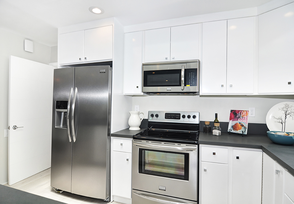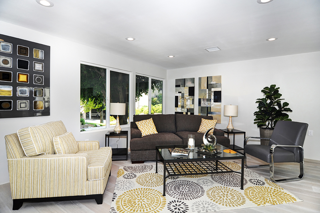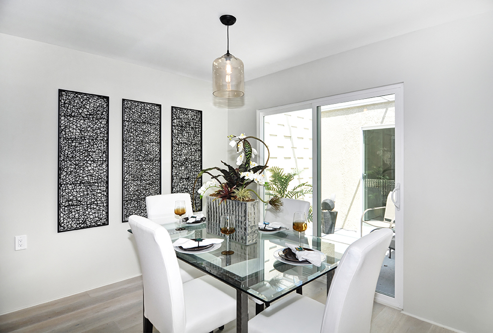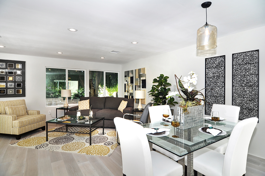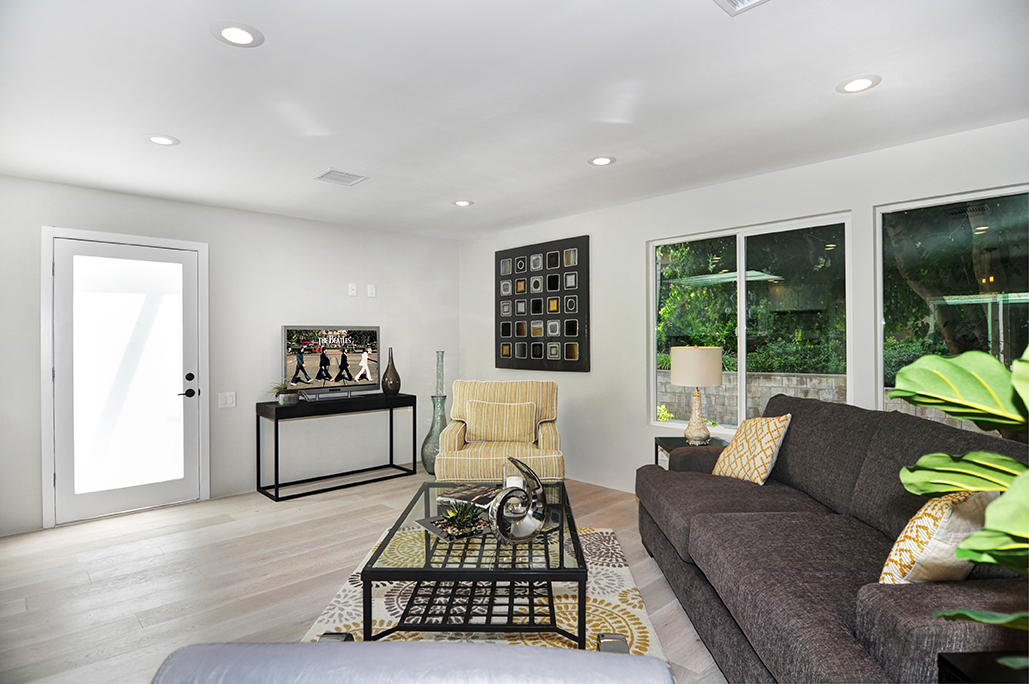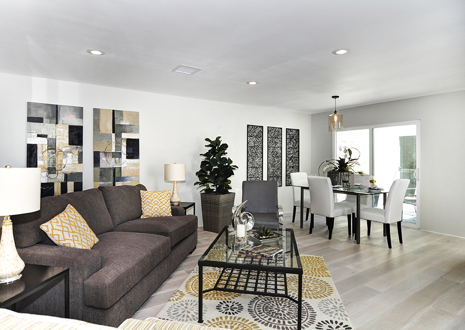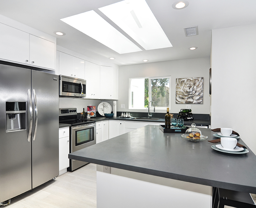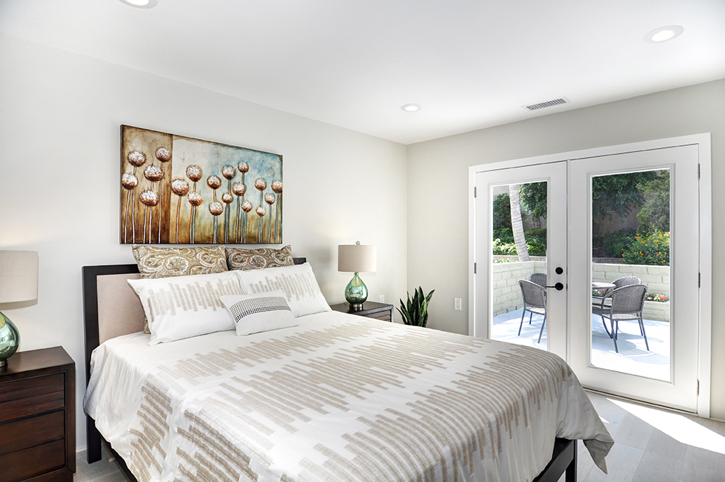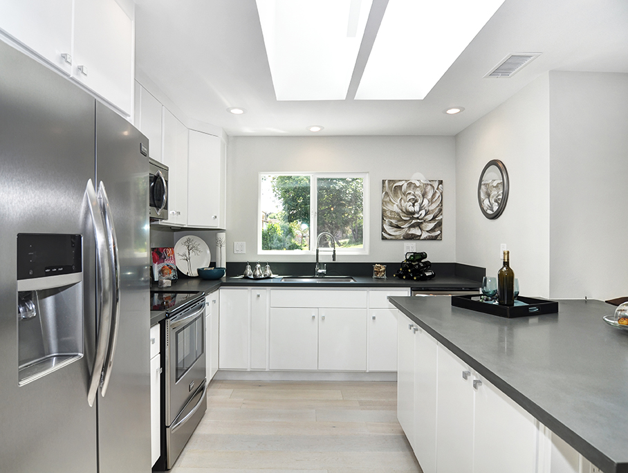 Exuding sophistication with its extensive high end remodel, location, and features, this home is located on the ground floor, which is a very coveted feature in this community, giving you the solitude of not having a neighbor above or below. The property is nestled against a greenbelt with no busy parking or street noise. Every inch of this contemporary home is brand new and beautifully designed with gorgeous hardwood flooring throughout, new paint, new electrical, fully remodeled bathrooms, central heating and air, new dual paned windows, and kitchen, featuring custom cabinets, new stainless steel appliances, and spacious island. A skylight has been added to the kitchen area for extra sunshine and peaceful ambiance. Brand new french doors offer a peaceful outdoor retreat to the private enclosed patio, and a serene sunroom or atrium offers and additional space for solitude, dining, or relaxing and enjoying the fresh air. The property sits on a South facing lot, receiving morning sun and afternoon shade, making this home an exquisite place to call home.