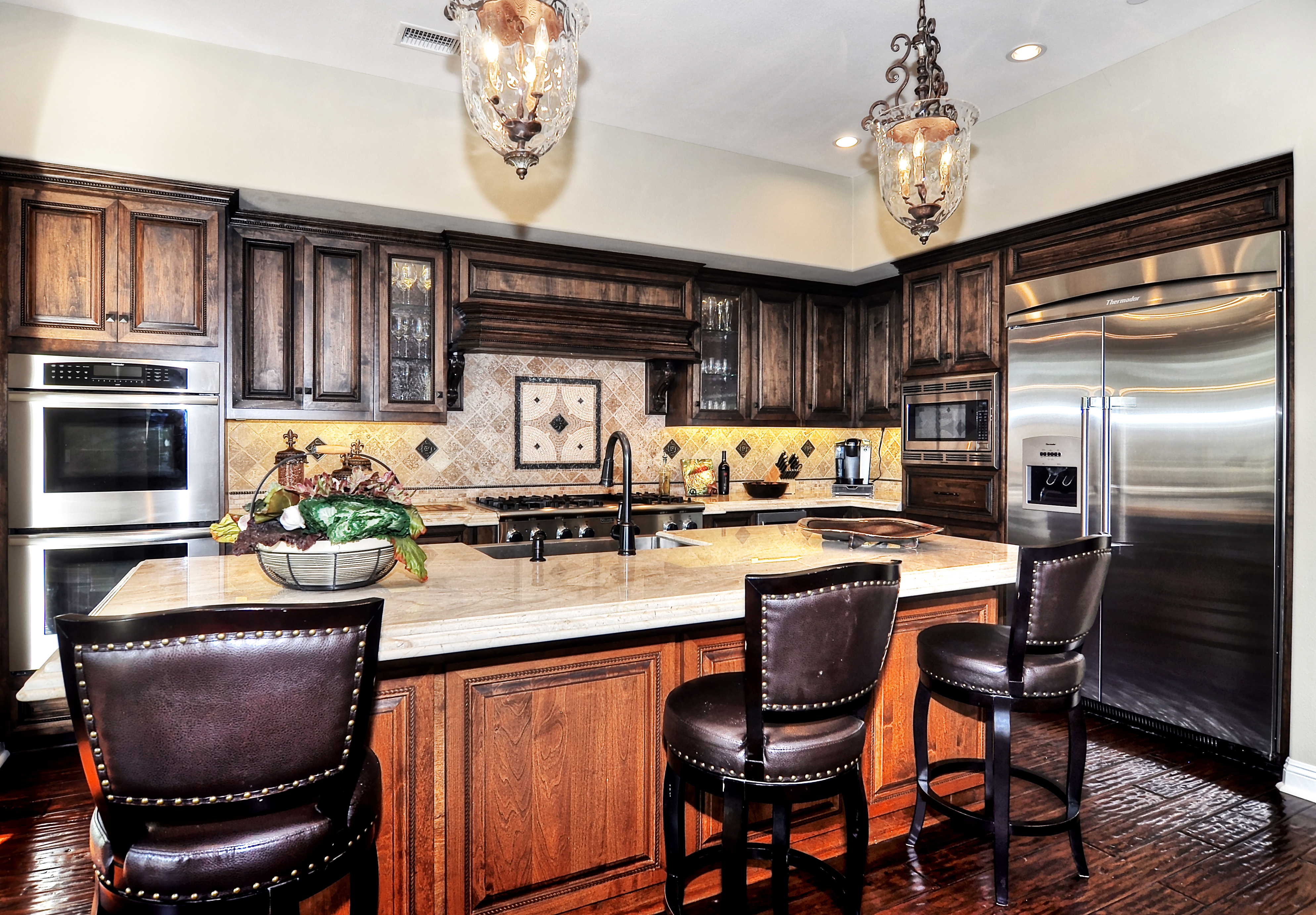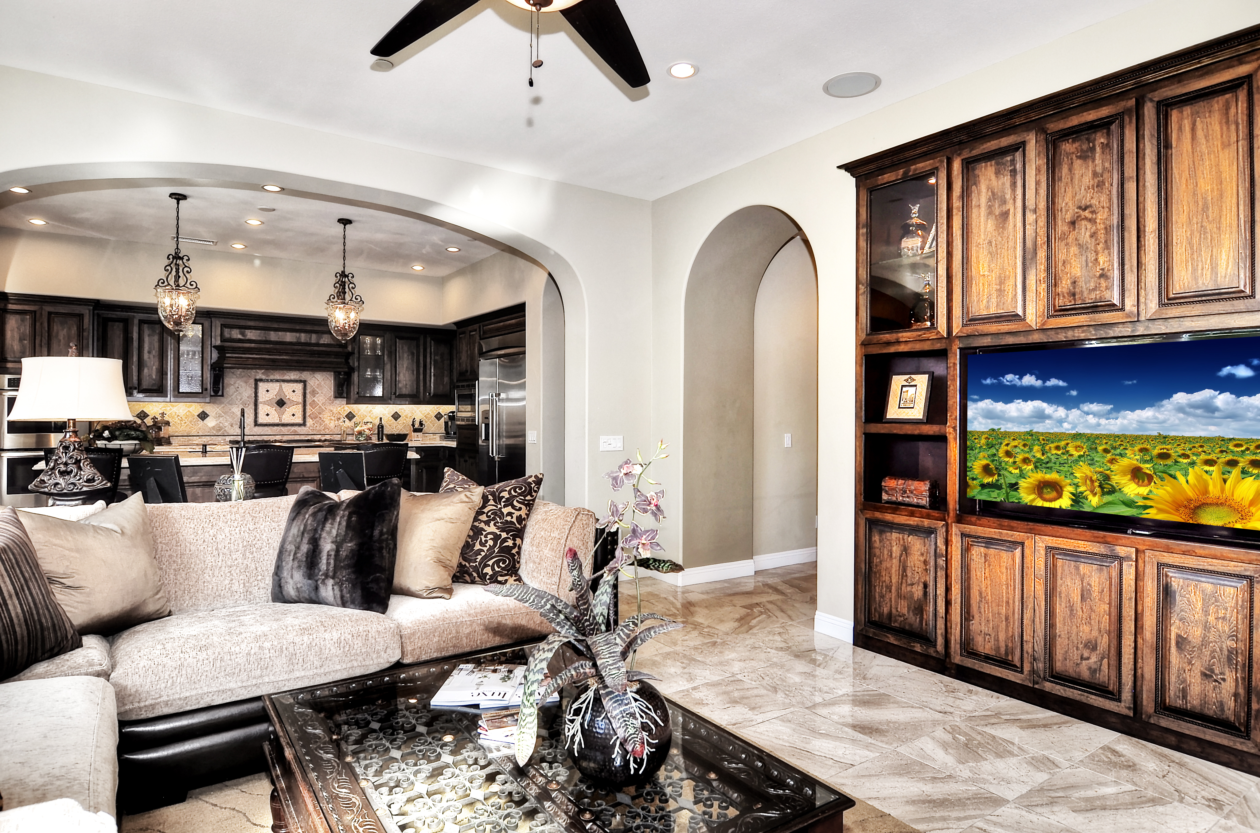 Settled on a pristine park like cul-de-sac location with only 9 homes, this exclusive Covenant Hills residence offers the ultimate in Spanish style architecture and fine living. Featuring a generous pool sized yard and lush landscaping, this 5 bedroom 5.5 bath home is an entertainer’s paradise. The kitchen’s luxurious newly remodeled culinary accoutrements include professional grade stainless steel appliances, gorgeous marble countertops and backsplash, dual dishwashers, butler’s pantry, and custom hardwood cabinetry. Two sets of French doors open to enhance the outdoor living options and beautiful view of this exceptional property. The kitchen and living room both radiate natural light providing a serene, comfortable environment. Additional highlights of this 4718 sq ft interior include a sublime master bedroom suite offering a private balcony, spa-inspired master bath, with walk-in closet, and third story retreat. The secondary bedrooms offer generous space and accommodate ensuite bathrooms. Throughout this exceptional home, marble and hardwood flooring provide exquisite detail as well as crown molding, surround sound, central vac, wine cellar, water treatment system, custom closet organizers, plantation shutters, 3 car garage with epoxy flooring and storage cabinets. This showplace home also features impressive community amenities, including multiple swimming pools, tennis courts, aquatic park, skate park, hiking trails, and clubhouses just to name a few.