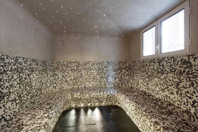 This luxury French home’s bathroom has a hammam, which combines intricate details with natural elements.