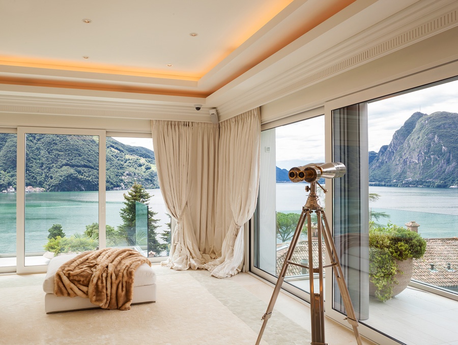 The incredible highlights of this penthouse in the Italian-speaking Ticino region of Switzerland include spectacular views of a pristine alpine lake.
